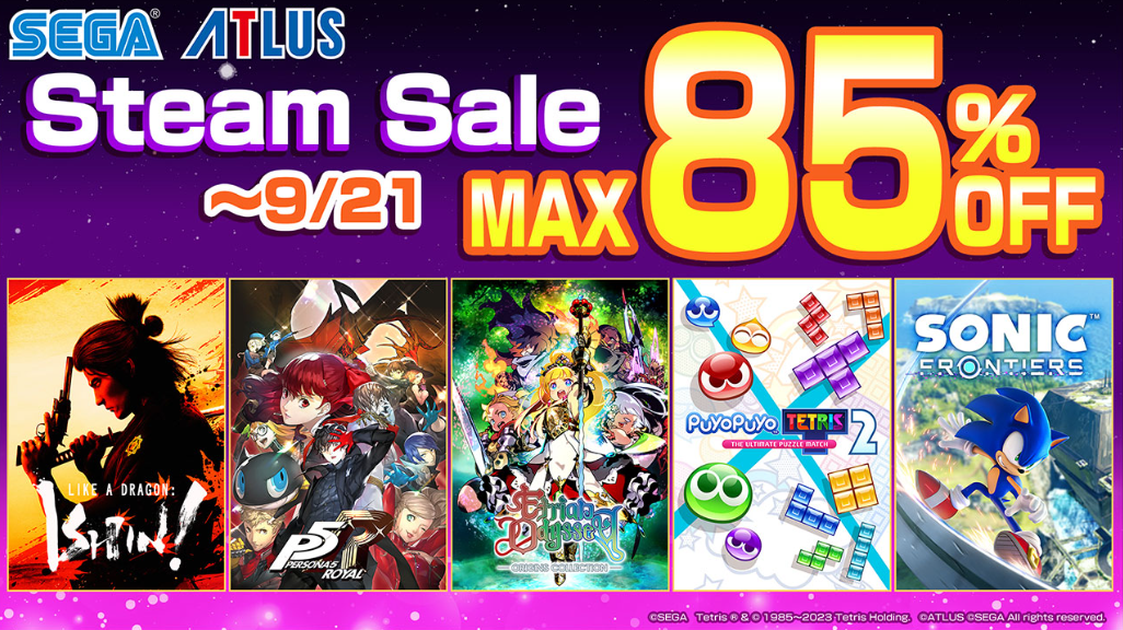 Judul-judul game populer seperti Like a Dragon: Ishin!, Hatsune Miku: Project DIVA Mega Mix+, Puyo Puyo Tetris 2, Persona 5 Royal, dan Etrian Odyssey Origins Collection juga akan tersedia dengan harga yang istimewa.